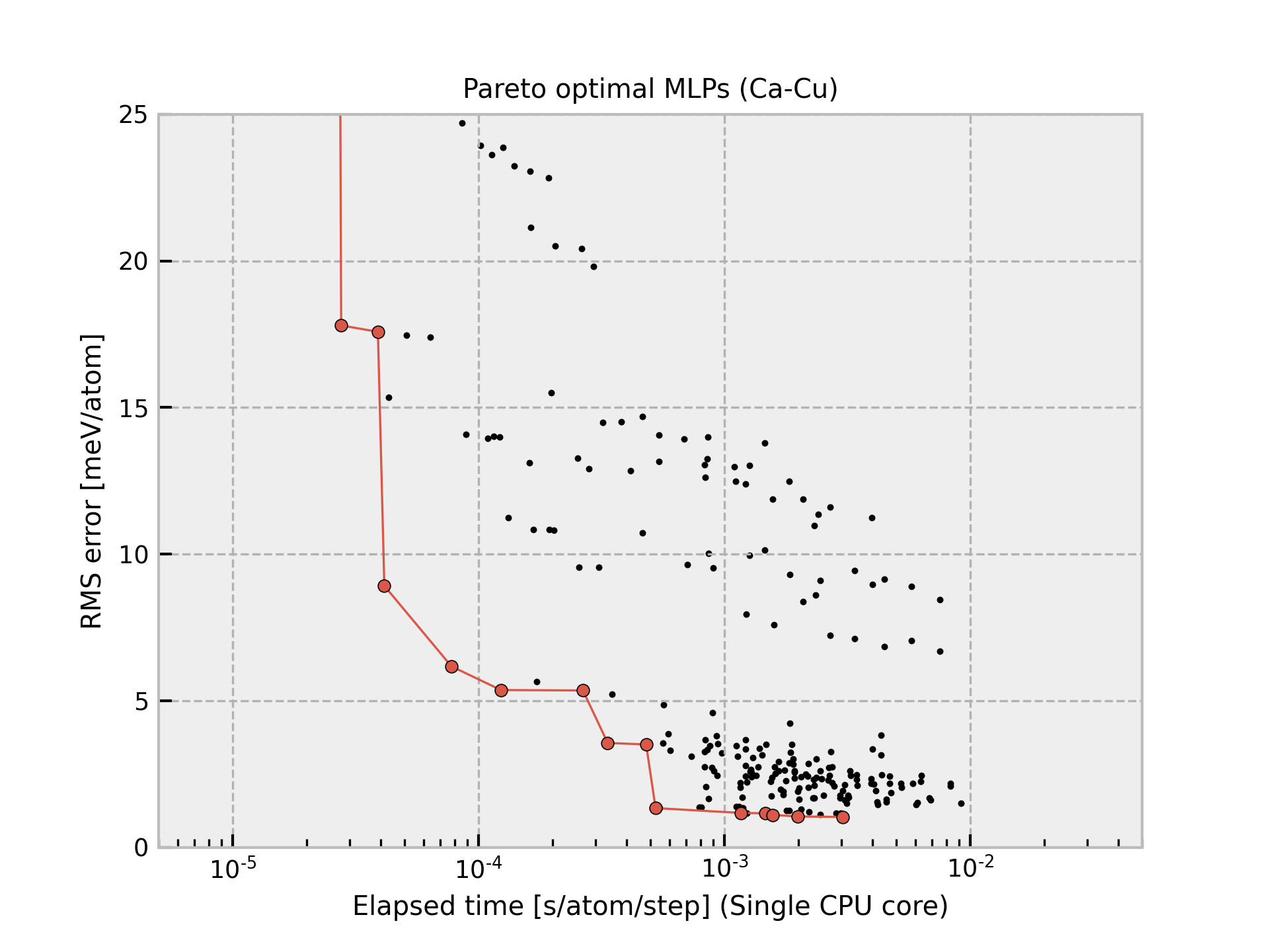 Column “Time” shows the time required to compute the energy and forces for 1 MD step and 1 atom, which is estimated from a simulation of 10 runs for a structure with 284 atoms using a workstation with Intel(R) Xeon(R) CPU E5-2695 v4 @ 2.10GHz. Note that the MLPs should be carefully used for extreme structures. The MLPs often return meaningless values for them.