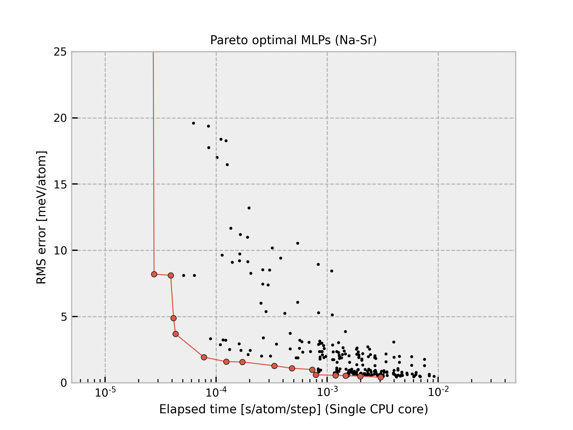 Column “Time” shows the time required to compute the energy and forces for 1 MD step and 1 atom, which is estimated from a simulation of 10 runs for a structure with 284 atoms using a workstation with Intel(R) Xeon(R) CPU E5-2695 v4 @ 2.10GHz. Note that the MLPs should be carefully used for extreme structures. The MLPs often return meaningless values for them.