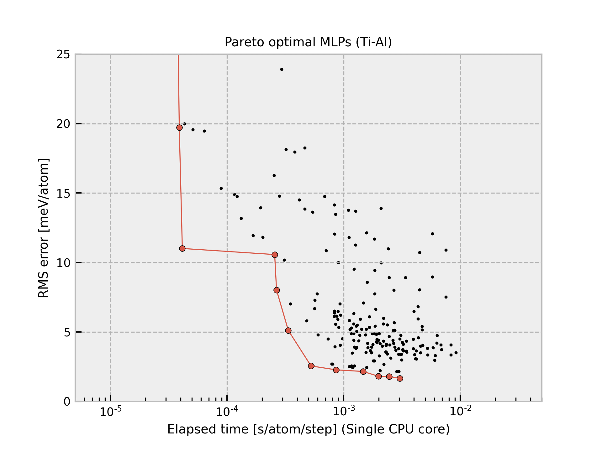 Ti-Al-2022-06-22 shows large prediction errors. They should be carefully used. Such an MLP is often accurate for reasonable structures, but it is not accurate for unrealistic structures.