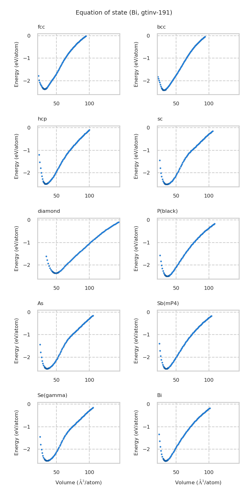 Equation of state for each structure