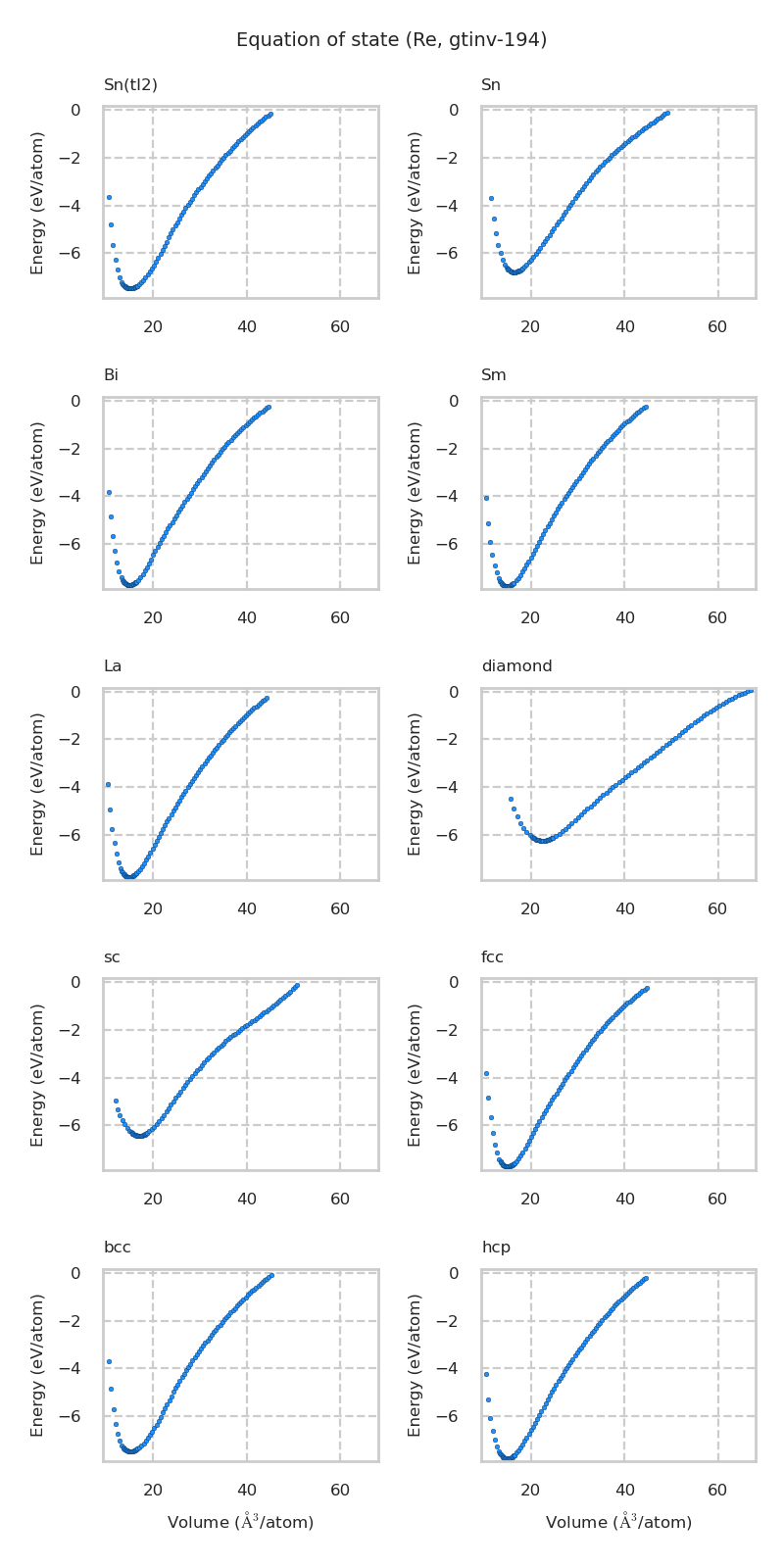 Equation of state for each structure