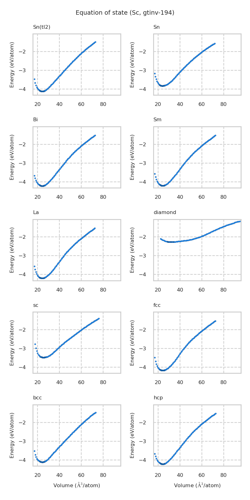 Equation of state for each structure
