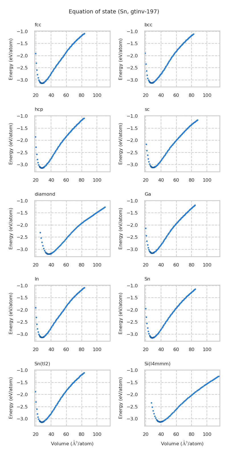 Equation of state for each structure
