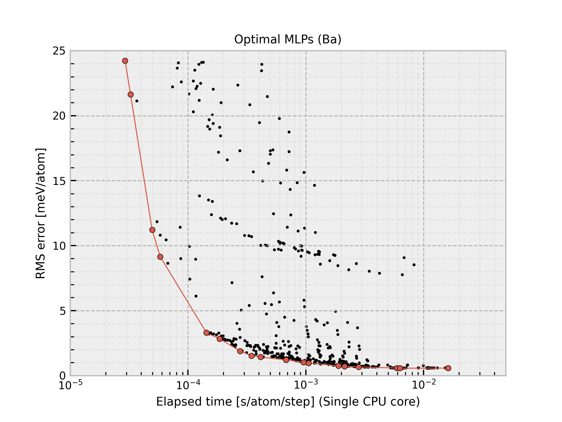Column “Time” shows the time required to compute the energy and forces for 1 MD step and 1 atom, which is estimated from 10 runs for a large structure using a workstation with Intel(R) Xeon(R) CPU E5-2695 v4 @ 2.10GHz. Note that these MLPs should be carefully used for extreme structures. The MLPs often return meaningless values for them.