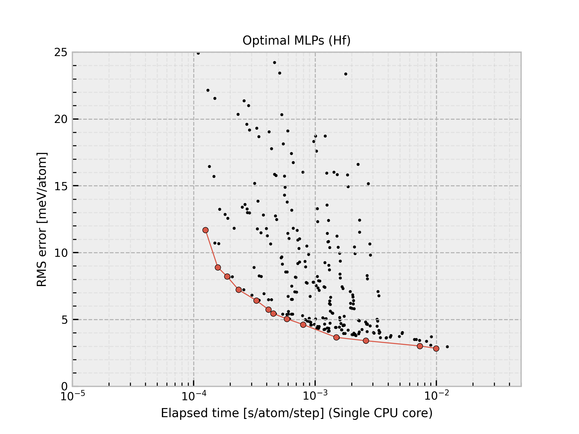 Hf-2024-06-05 shows large prediction errors. Distributed MLPs should be carefully used. MLPs are often accurate for reasonable structures, but it is sometimes inaccurate for unrealistic structures.