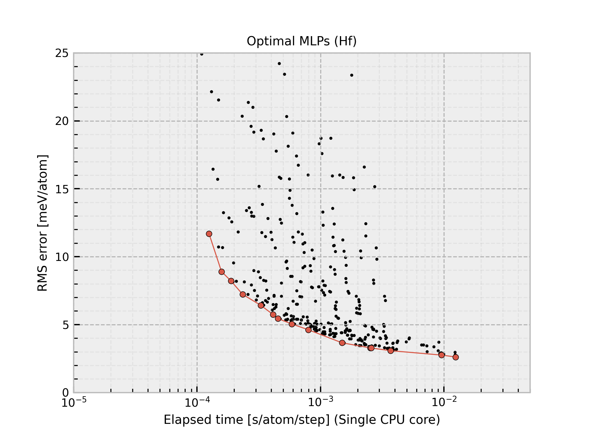Hf-2024-06-10-hybrid shows large prediction errors. Distributed MLPs should be carefully used. MLPs are often accurate for reasonable structures, but it is sometimes inaccurate for unrealistic structures.