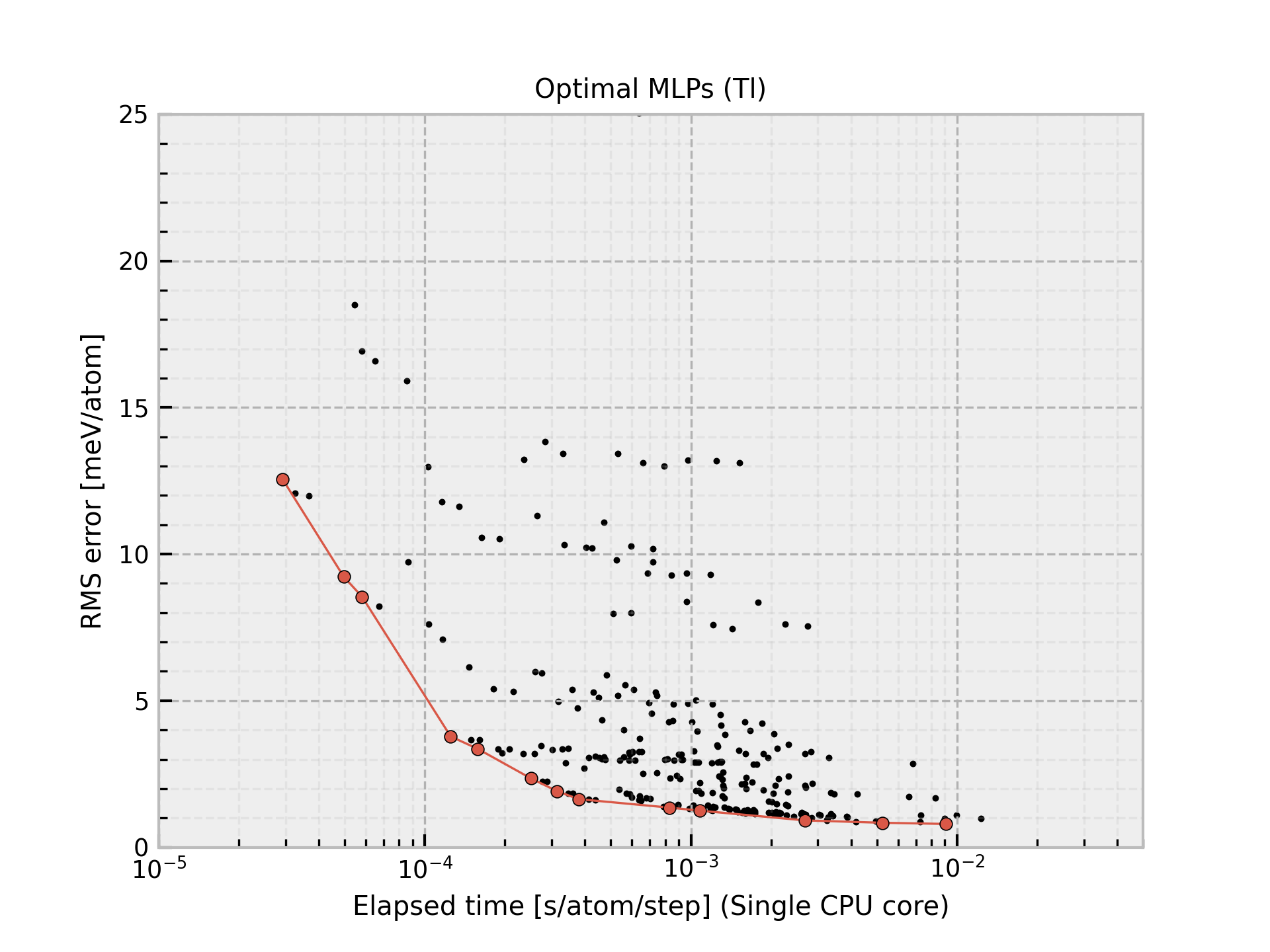 Column “Time” shows the time required to compute the energy and forces for 1 MD step and 1 atom, which is estimated from 10 runs for a large structure using a workstation with Intel(R) Xeon(R) CPU E5-2695 v4 @ 2.10GHz. Note that these MLPs should be carefully used for extreme structures. The MLPs often return meaningless values for them.